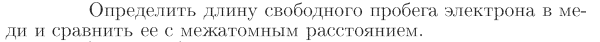 Определить длину свободного пробега электрона в меди и сравнить ее с межатомным расстоянием.