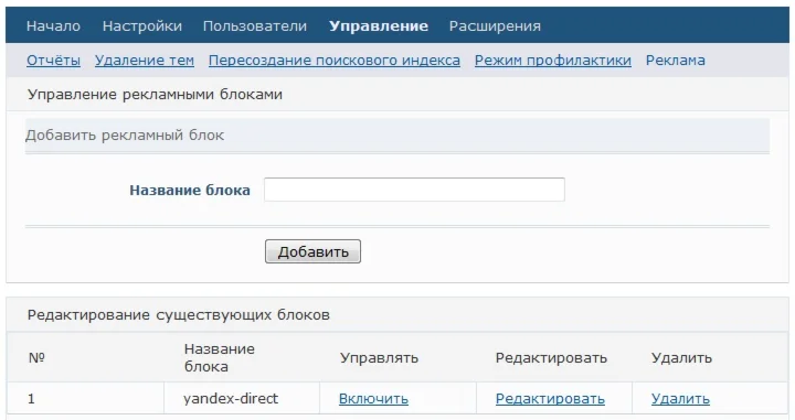 Это расширение позволяет добавлять рекламные блоки на различные страницы, положение блоков можно менять, количество блоков неограничено.