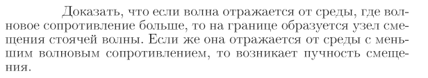 Доказать, что если волна отражается от среды, где волновое сопротивление больше, то на границе образуется узел смещения стоячей волны. Если же она отражается от среды с меньшим волновым сопротивлением, то возникает пучность смещения.
