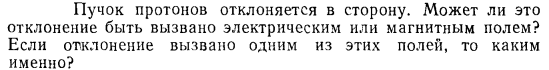Пучок протонов отклоняется в сторону. Может ли это отклонение быть вызвано электрическим или магнитным полем? Если отклонение вызвано одним из этих полей, то каким именно?