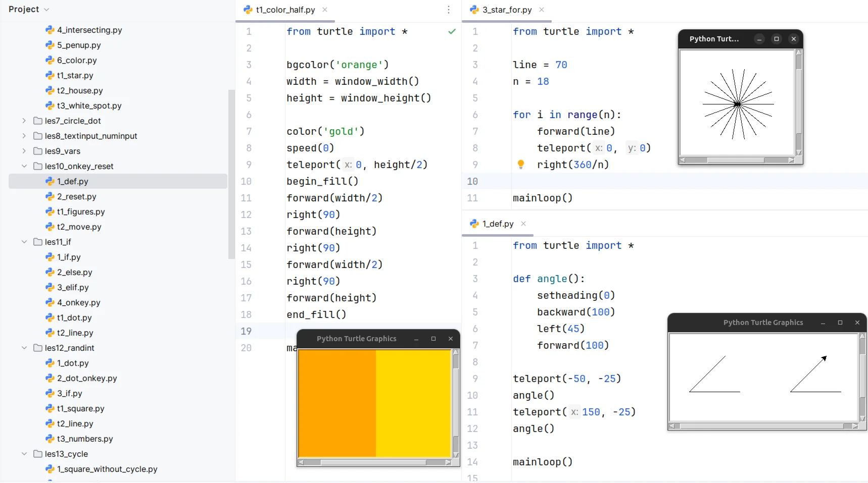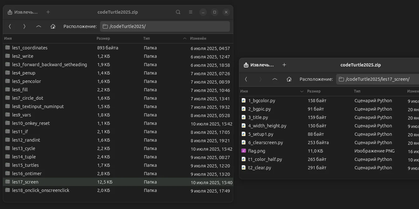 Уроки курса без решения заданий: https://younglinux.info/turtle/course