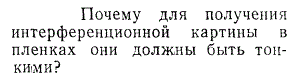 Почему для получения интерференционной картины в пленках они должны быть тонкими?