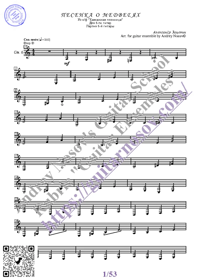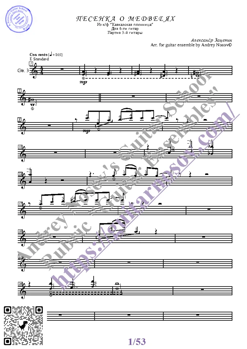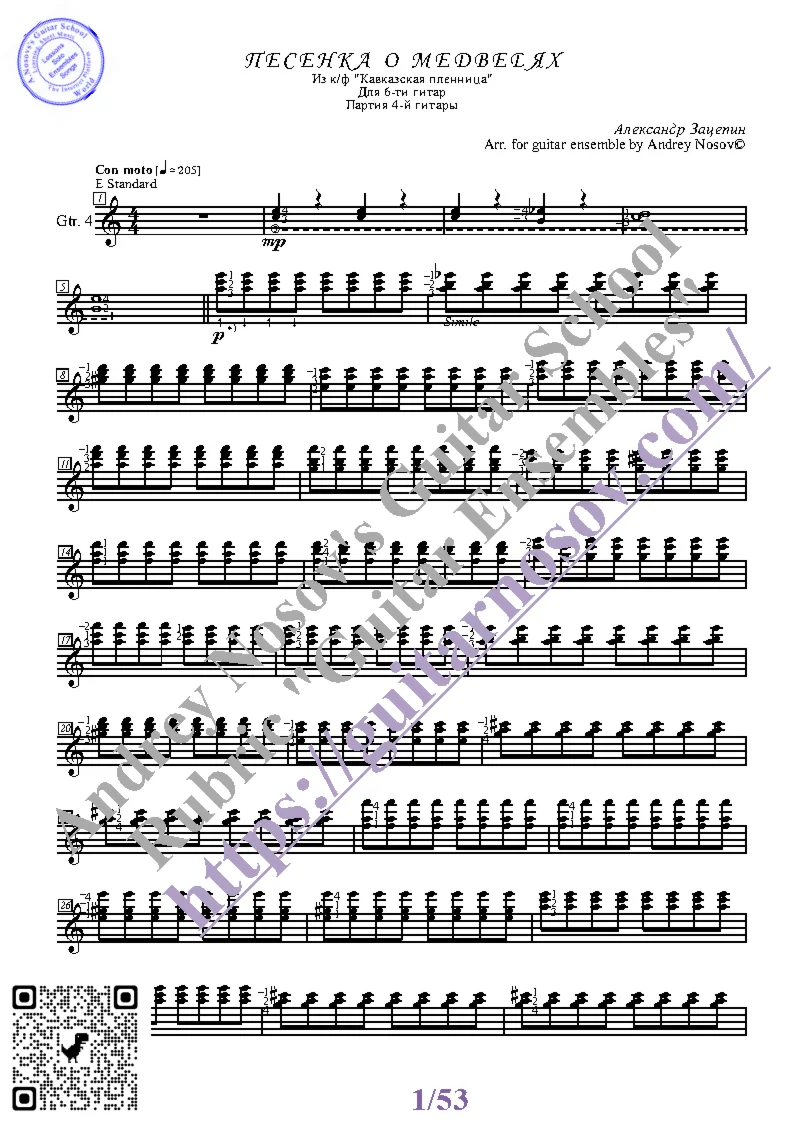 Товар включает в себя партитуру и партии отдельных гитар (в одном PDF). Прилагается ссылка на прослушивание / скачивание mp3.