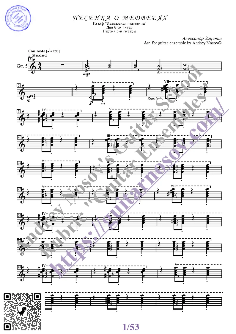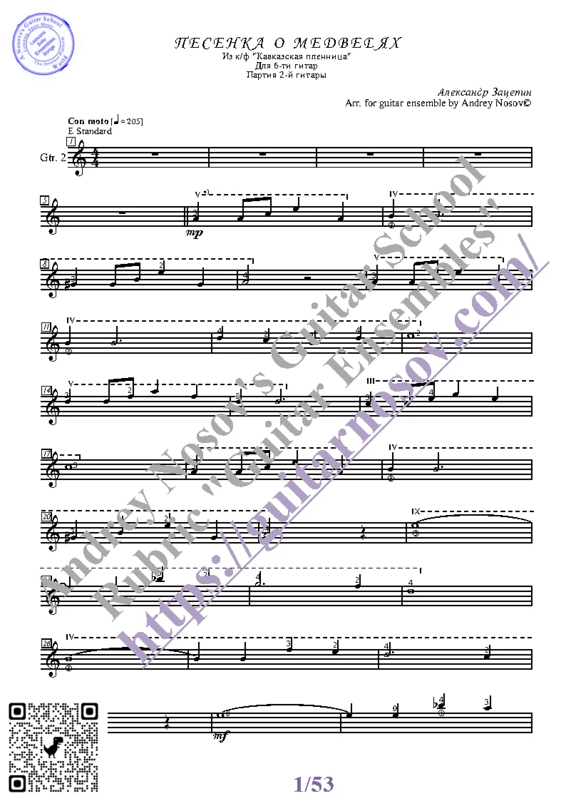 Магазин » Песенка о медведях (Ноты для 6-ти гитар)
