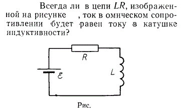 Всегда ли в цепи LR, изображенной на рисунке , ток в омическом сопротивлении будет равен току
