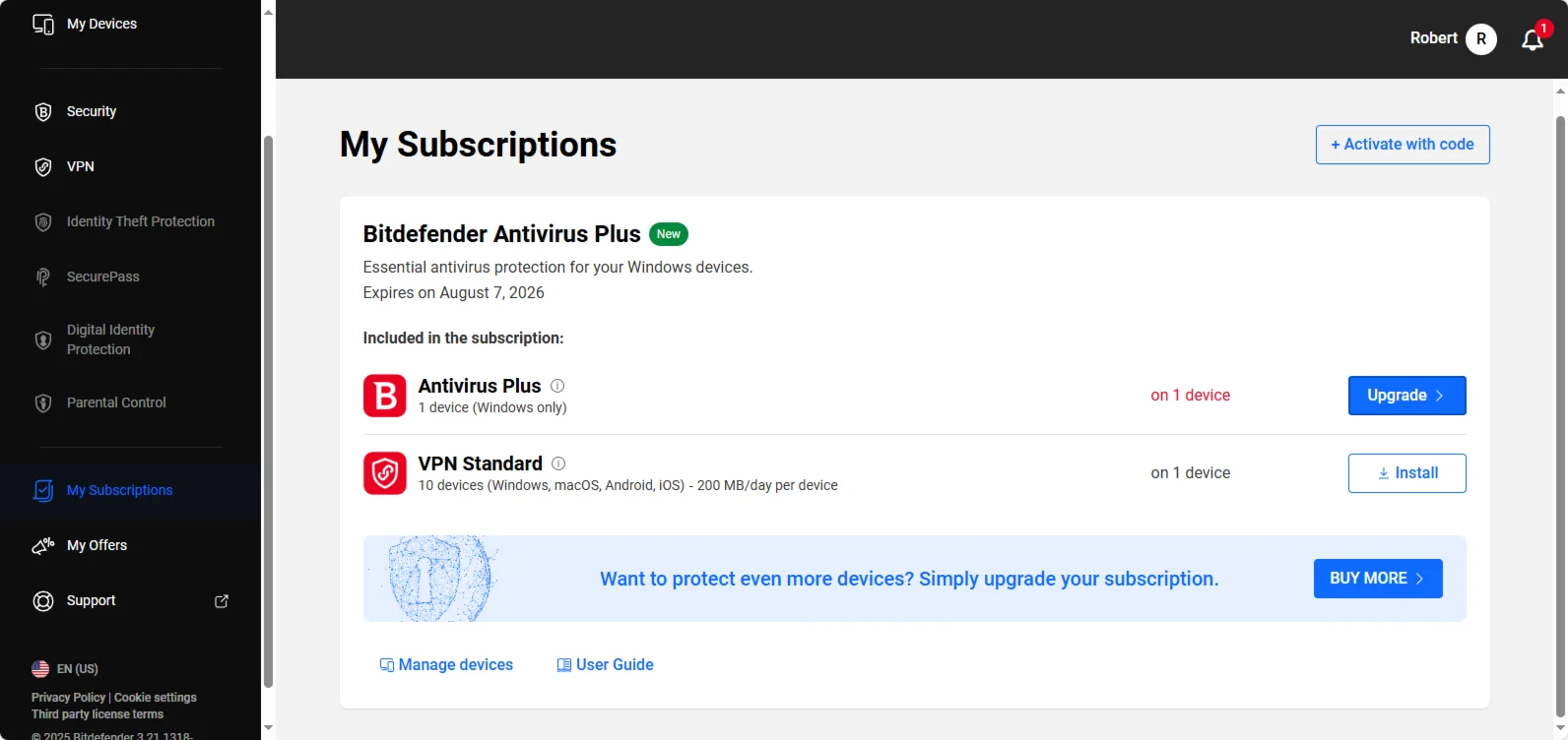 Bitdefender Antivirus Plus: только 1 устройство Windows