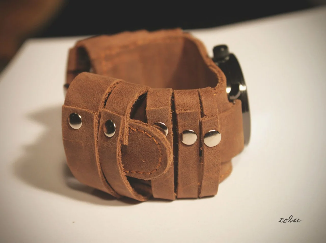 Браслет с авторским дизайном и механическими часами выполнен из натуральной кожи, для того, что бы защитить ваше запястье от соприкосновения с холодным металлом и добавить изюминки к повседневной одежде.