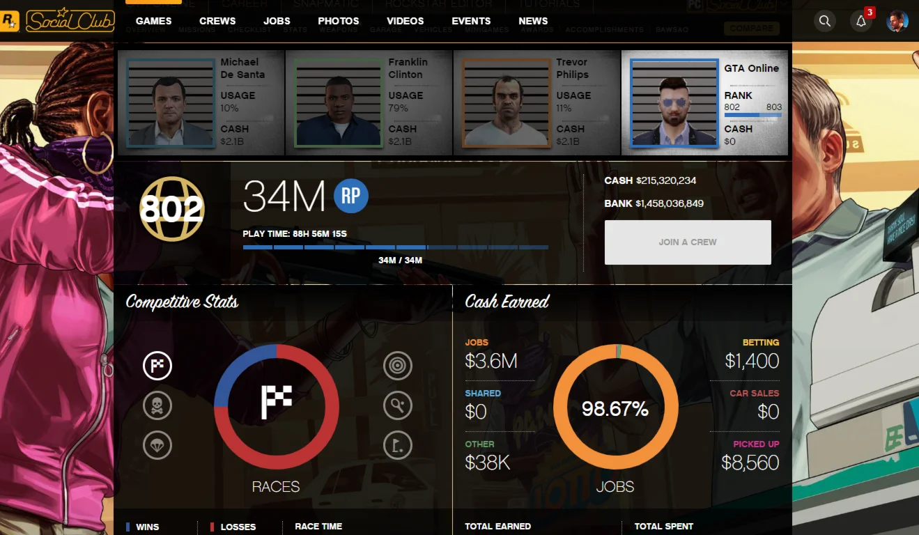 На эту учетную запись в gta online присутствуют одиночные персонажи, мужчины с максимальными способностями (вы можете изменить их внешний вид через меню взаимодействия (по умолчанию m - style - изменить внешний вид))
