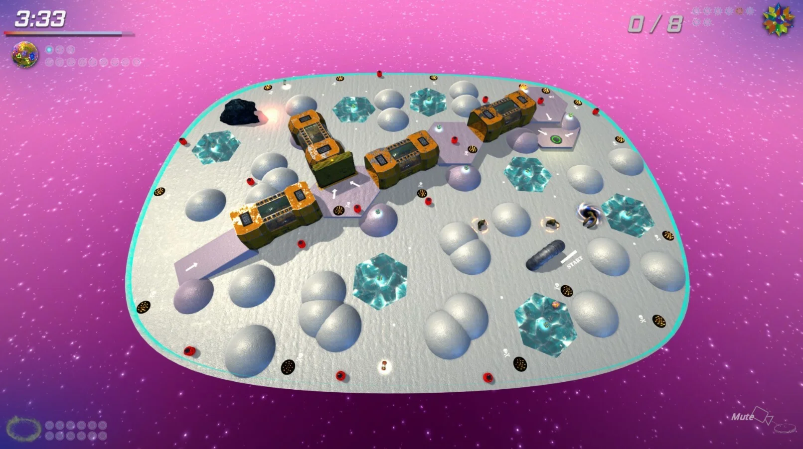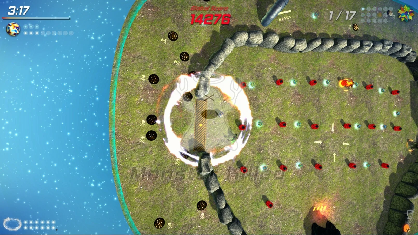 Поверните мир, физика переместит шарики. Избегайте препятствий, собирайте звезды, уничтожайте монстров быстро, гонка со временем, полная вызовов и удовольствия.