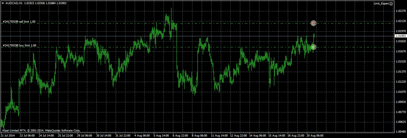Данный советник автоматически выставляет бай лимит и селл лимит ордера, либо только один из них (в зависимости от настроек) на заданном расстоянии от цены, в определенное время. В настройках можно выбирать время установки ордеров, расстояние от текущей цены, лот каждого ордера, тейк профит и стоп лосс. Если тейк профит и стоп лосс ненужен - ставьте 0.
