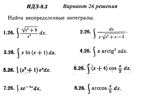 Решения 8-и неопределенных интегралов из Рябушко части 2 ИДЗ 8.3 вариант 26