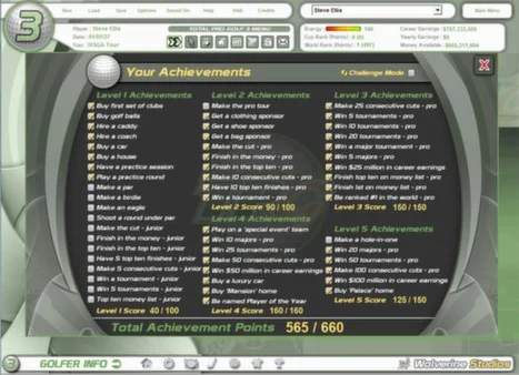Features: Golf career management simulation - manage your very first qualifying round to retirement off the senior tour. One-Click or Tri-Click play options for playing out a round of golf. Shot shaping options allow you to strategically work your way around the course. Fast gameplay - play out rounds hole-by-hole or sim an entire round in seconds. Win event trophies, major tour events, and tour awards. Six international professional golf tours to move between your golf career. Full customization of golfers, tours and sponsors. RPG elements allow you to manage your golfer on and off the golf course. Hire coaches to improve specific aspects of your game and a caddy that can assist you in strategy and reading greens. Sign lucrative sponsorship deals with equipment, apparel, and shoe manufacturers. Weekly news reports to keep you up-to-date on golfers around all six tours. Massive almanac that details every bit of history for every golfer, course, and tour. In-game player awards, rankings, and achievement challenges. Manage your weekly schedule over a tour season - when you practice, what events to play in, when to take a break from the weekly grind of life on the tour.