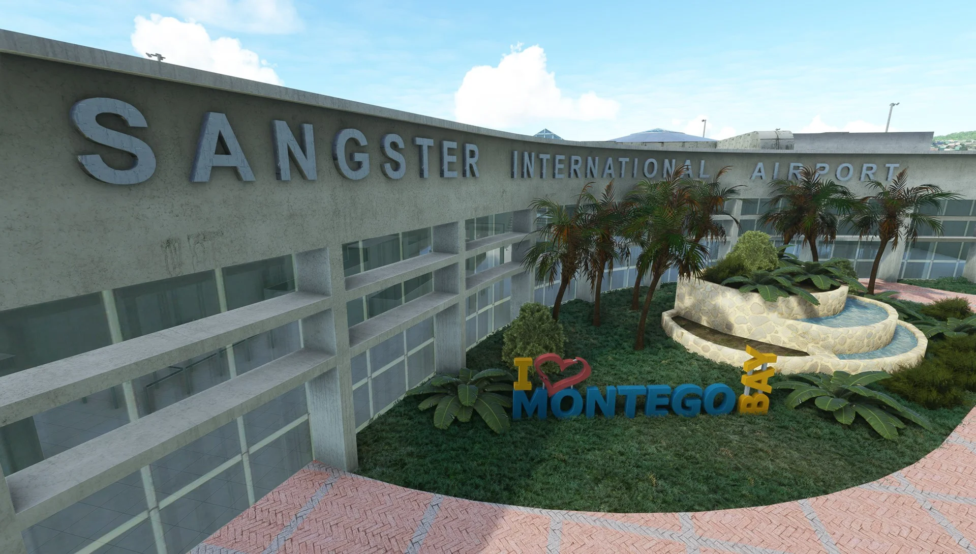Международный аэропорт Сангстер - главные воздушные ворота Ямайки, расположенные в Монтего-Бей. Этот детально воссозданный аэропорт обслуживает более 30 авиакомпаний и является ключевым хабом для туристов. Высококачественная модель включает как внешние, так и внутренние элементы терминала.