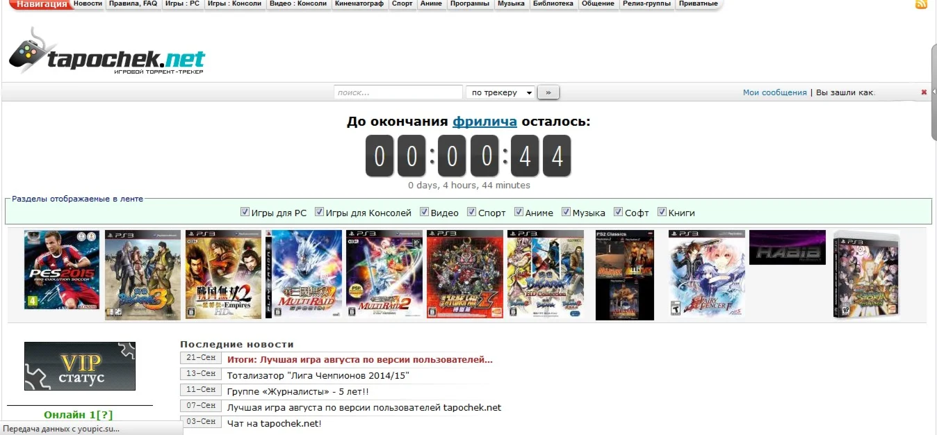 Tapochek.net – настоящее золотое дно для геймера и просто жителя глобальной сети. Tapochek - очень большой торент-трекер в российском сегменте, а в плане игры (для всех консолей), тапки лучший трекер рунета.. На сайте представлены практически все популярные игры. Кроме того, здесь есть классика кинематографа и фильмы в 3D.