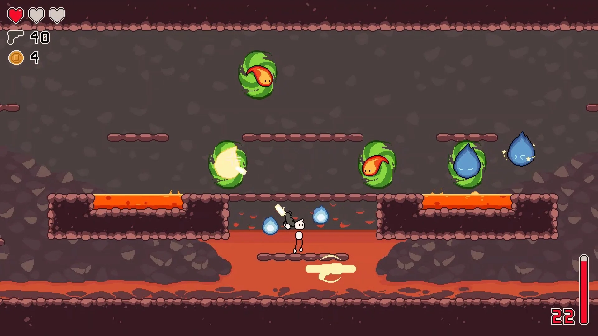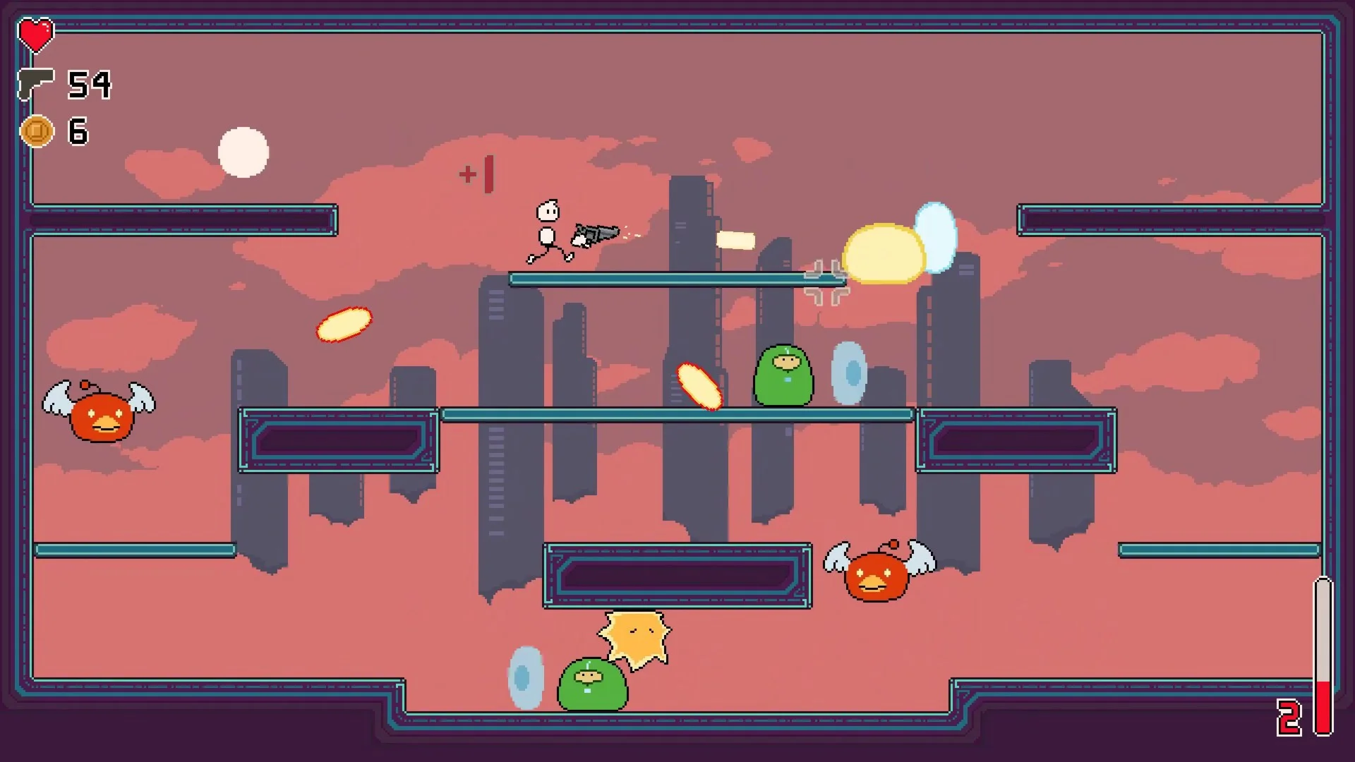 Gunkid 99 is a fast and frantic SCORE CHASER shoot'em up platformer inspired by Super Crate Box and arcade style games. The goal of the game is to earn as high a score as you can by collecting weapon drops throughout a run (and thereby changing your weapon in the process). Unlock and play across numerous hand-crafted stages in two modes, dodging level hazards and fighting off a unique garden variety of enemies.