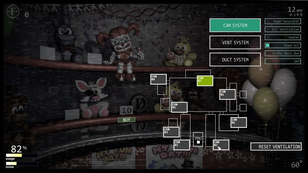 Добро пожаловать в лучший мэшап FNAF, где вы снова окажетесь в одиночестве в офисе, отбиваясь от убийц-аниматроников! Благодаря наличию 50 персонажей-аниматроников на выбор из семи игр Five Nights at Freddy's варианты настройки практически безграничны. Комбинируйте любых персонажей по своему желанию, задавайте их сложность от 0 до 20, а затем сразу же приступайте к игре! За своим офисным столом вам нужно будет управлять двумя боковыми дверями, двумя вентиляционными отверстиями, а также двумя воздушными шлангами, которые ведут прямо в офис.