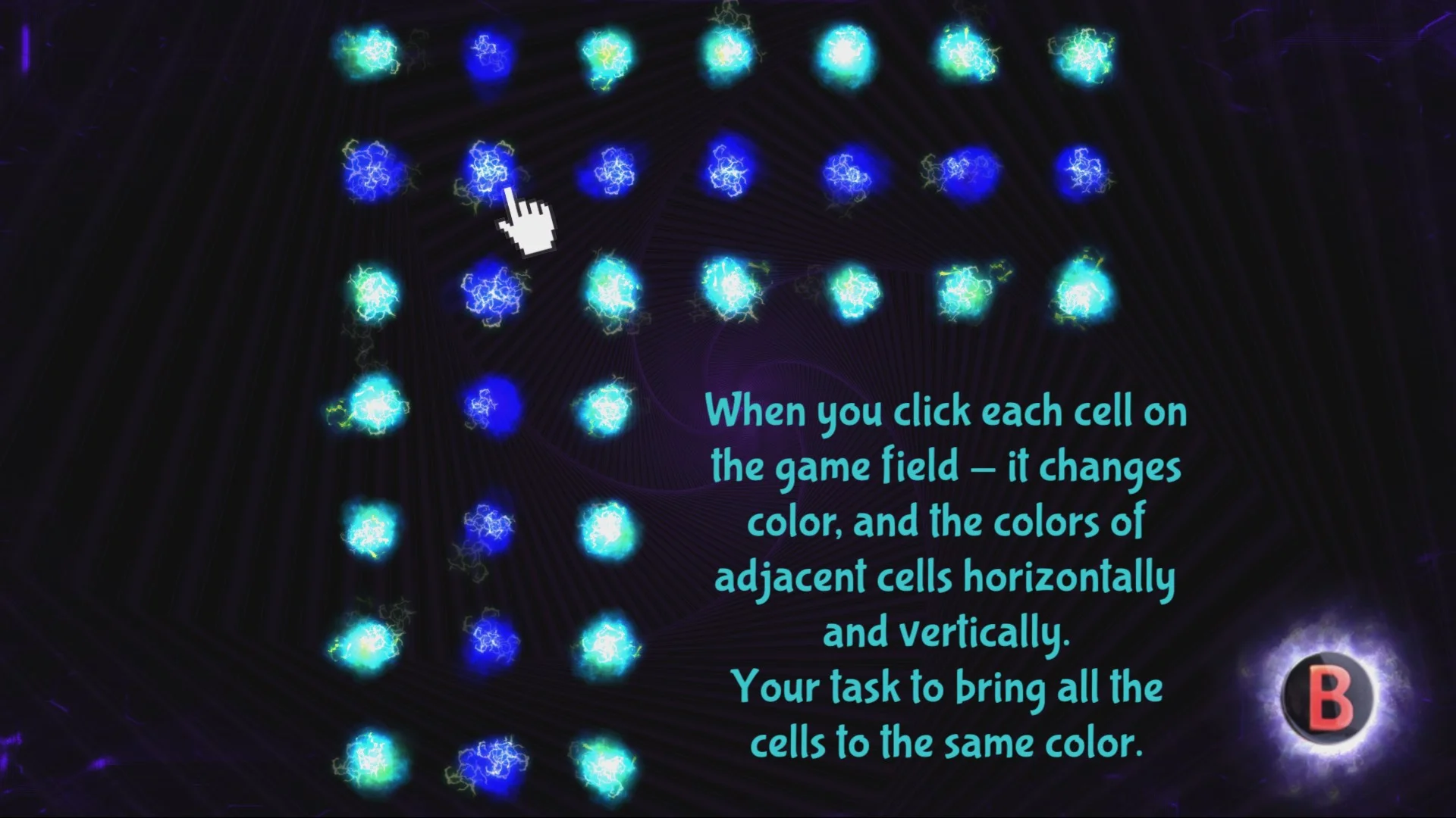 'Energy Cycle' – это новый паззл от разработчиков 'Energy Balance'. Каждая ячейка на игровом поле при нажатии меняет свой цвет, а также цвета всех соседних ячеек по горизонтали и вертикали. Задача – привети все ячейки к одному и тому же цвету. Звучит довольно просто, но попробуйте это сделать!
