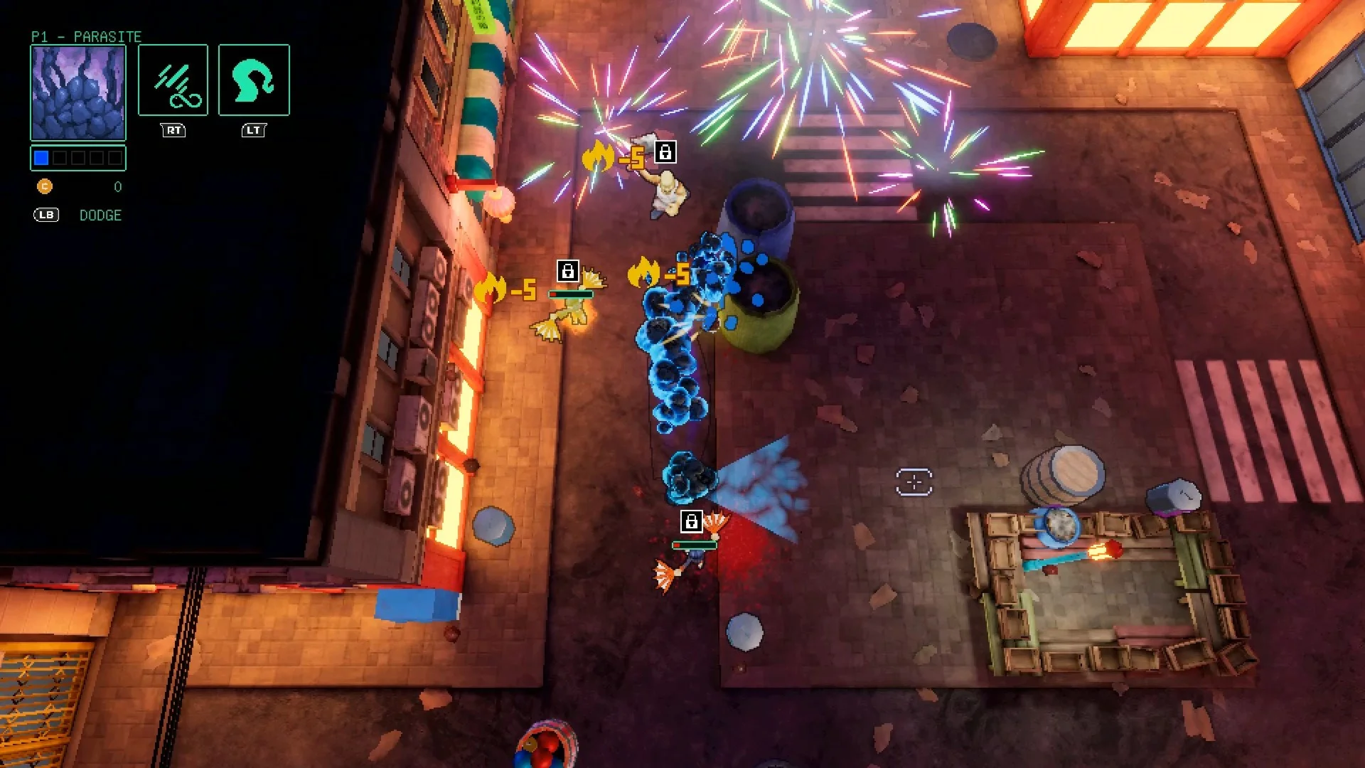 Игра в жанре twin-stick shooter и roquelike, где каждое прохождение — уникально. Управляйте 60 персонажами в роли враждебного инопланетного паразита. Пробейтесь на вершину пищевой цепочки: захватите президента, нажмите на большую красную кнопку и одолейте