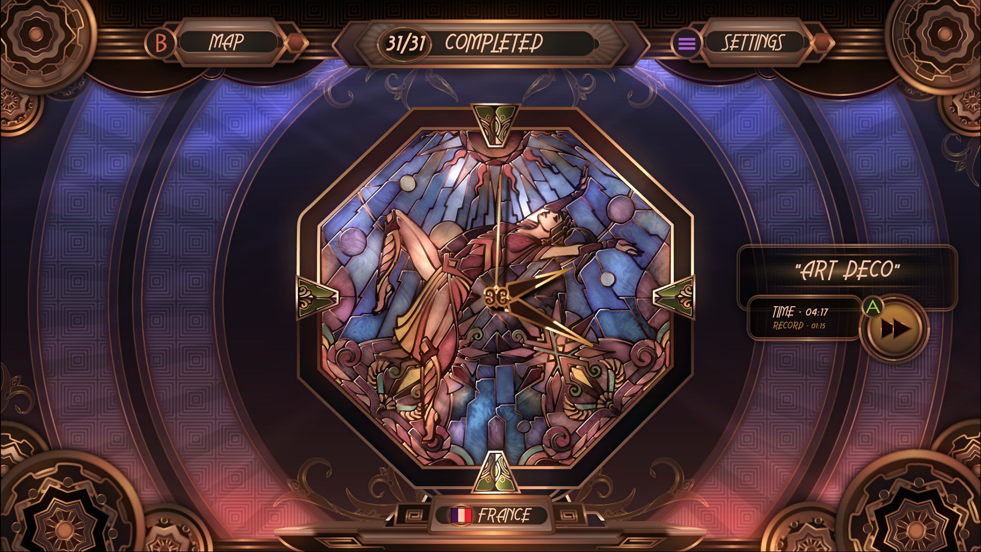 Glass Masquerade — это красочная головоломка, вдохновленная стилем ар-деко и завораживающими витражами XX века. Соберите осколки в единое целое и представьте свои работы на интерактивном электронном шоу «Международная выставка времени».