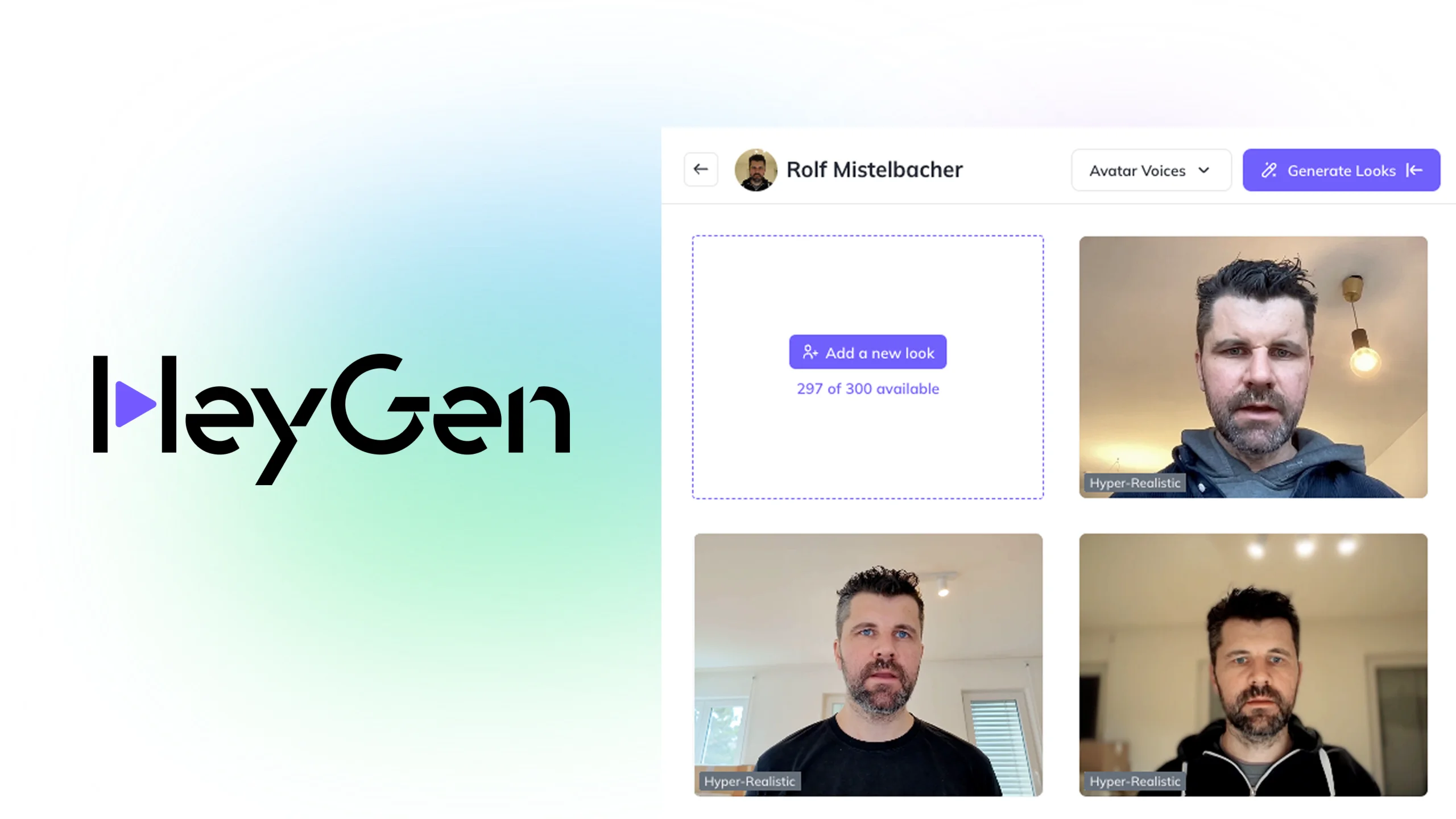 Настраиваемые цифровые гуманоиды: Используя технологии ИИ, просто загрузите фотографию для создания собственного цифрового гуманоида или выберите один из сотен аватаров, предоставленных HeyGen.