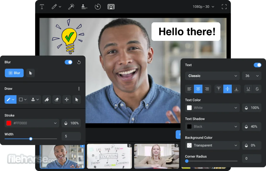 Вырезка на зелёном экране: Мощная функция вырезания на зелёном экране позволяет легко заменить фон видео без специального оборудования.
