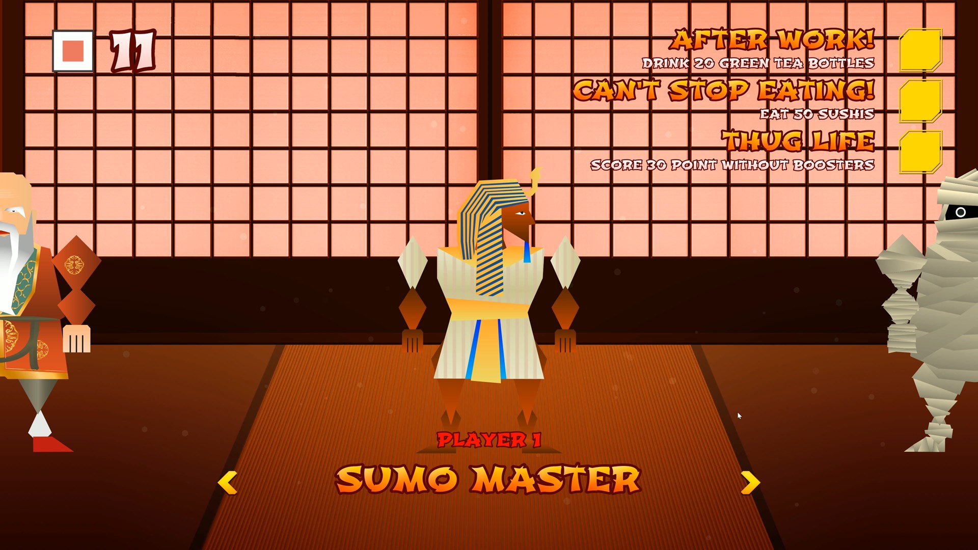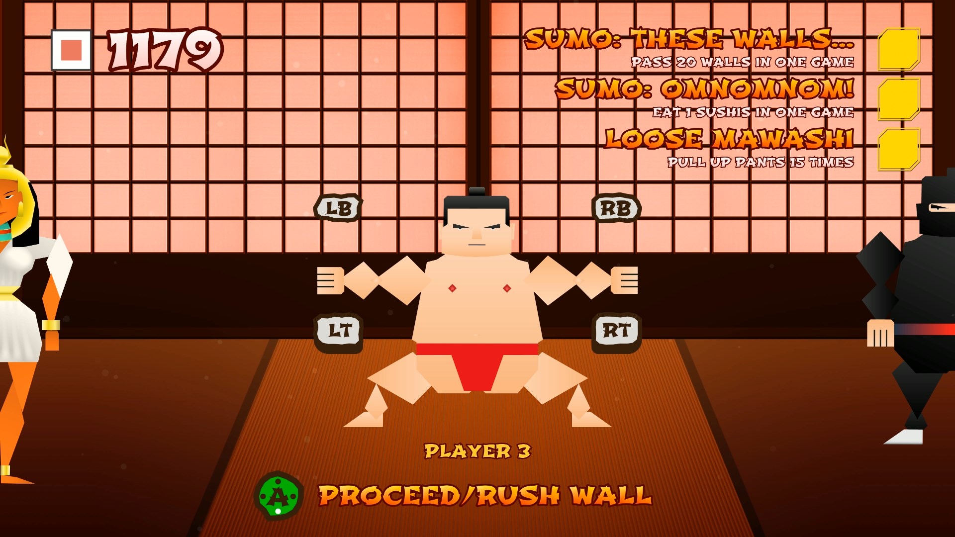 Время для сумо-вечеринки! Помогите борцам сумо выиграть в уморительном конкурсе. Управляйте их руками и ногами, чтобы они проскочили надвигающуюся бамбуковую стену или... дайте им упасть посмешнее!