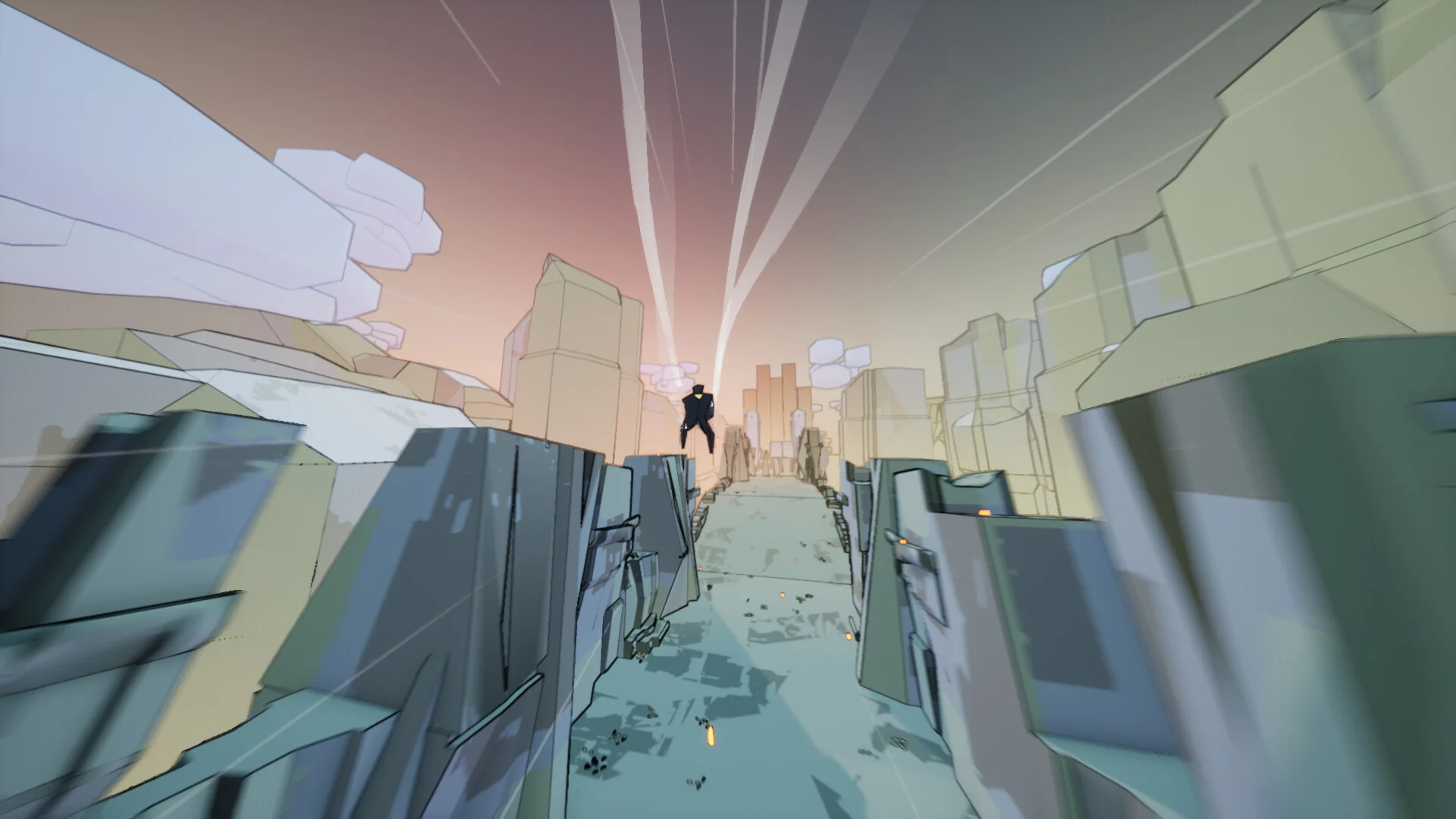 Fast runner in which you blast through gorgeous abstract landscapes. Dodge lasers, avoid lava and score as much as you can. Perfect for a quick game whenever you got a few minutes.