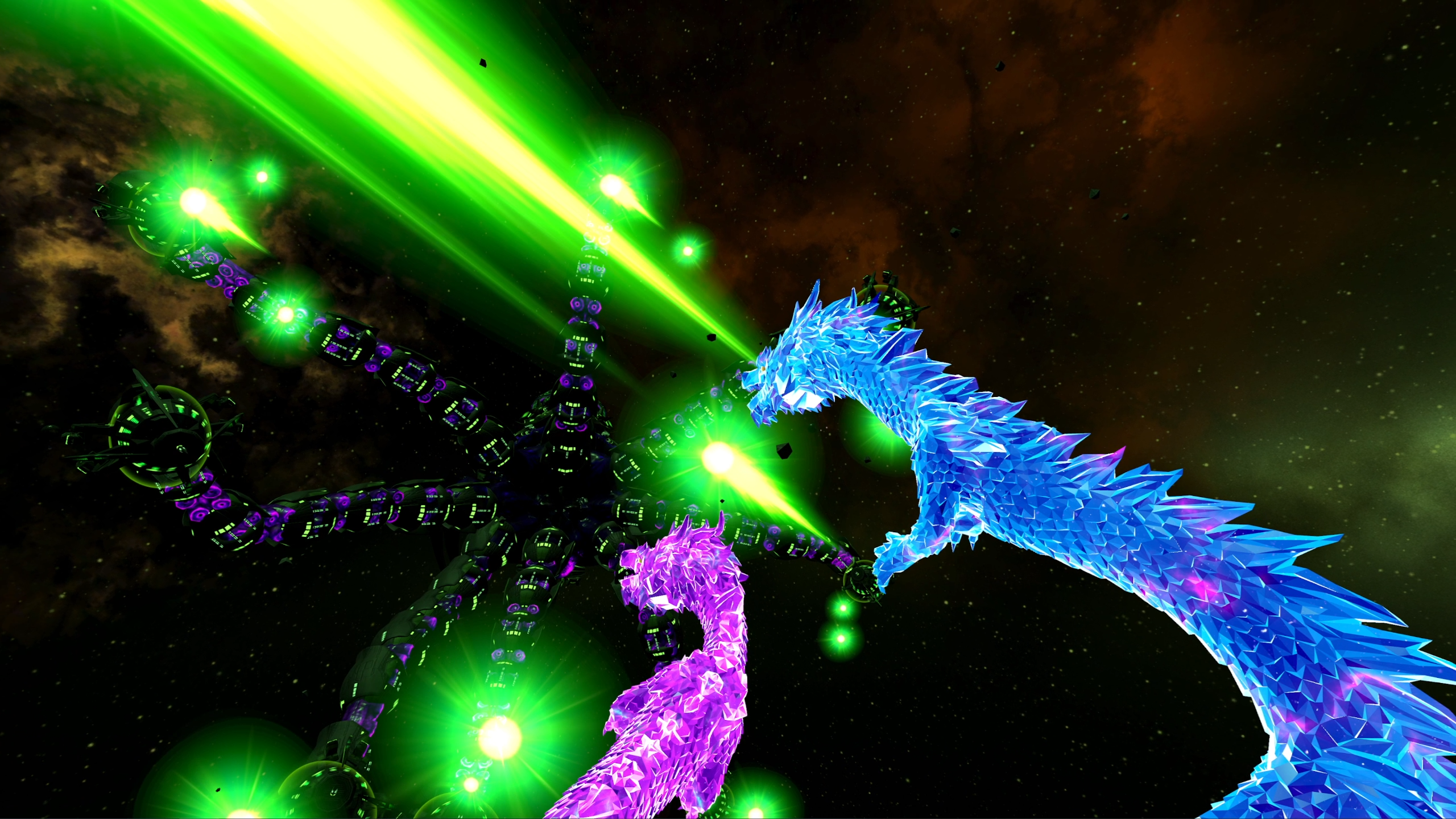 Возьмите под свой контроль пару маленьких космических драконов и проложите свой путь через космос с помощью нашей инновационной системы перемещения и поворота. Сражайтесь с армадами роботов, сражайтесь с гигантскими монстрами, исследуйте галактику!