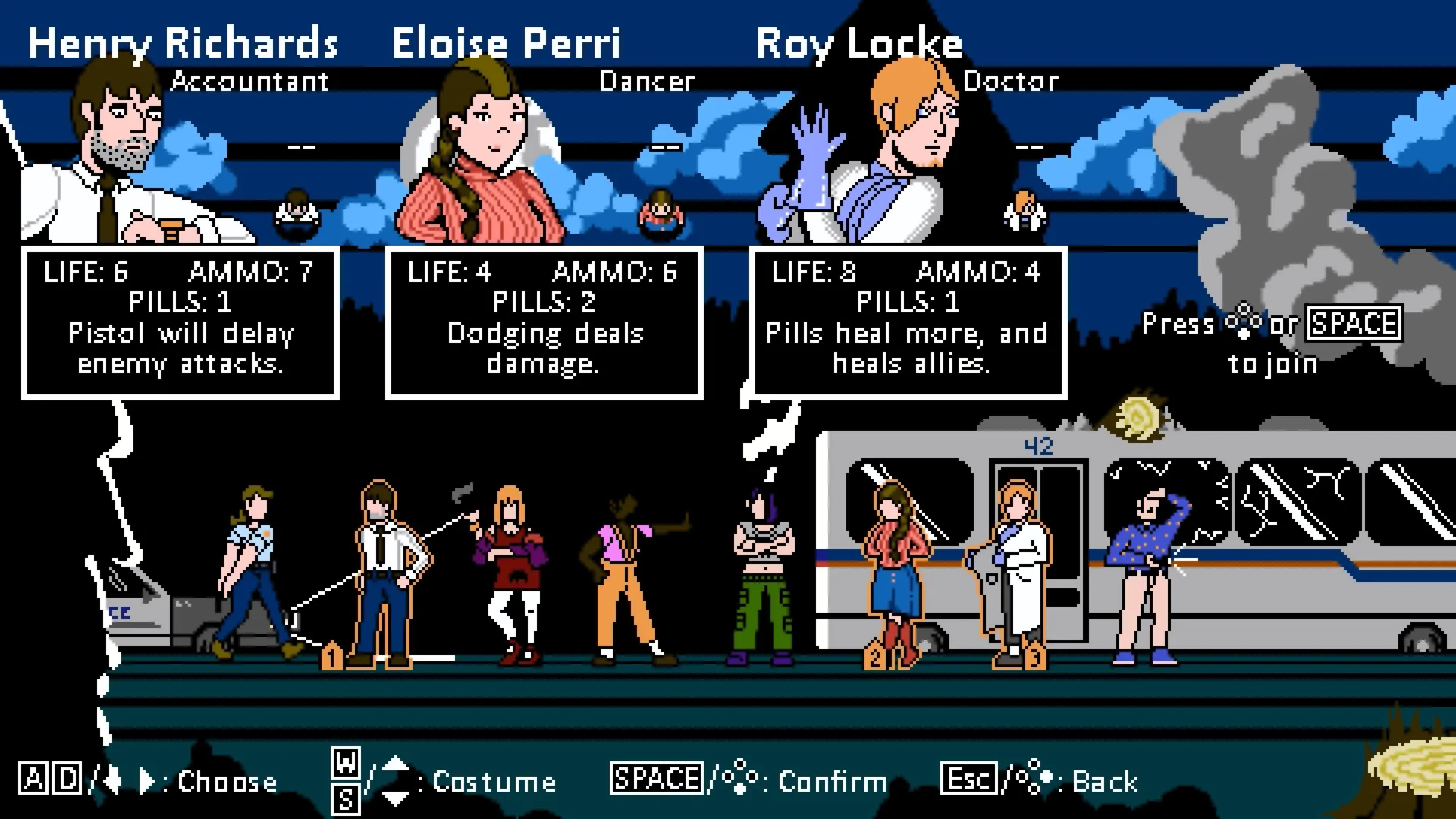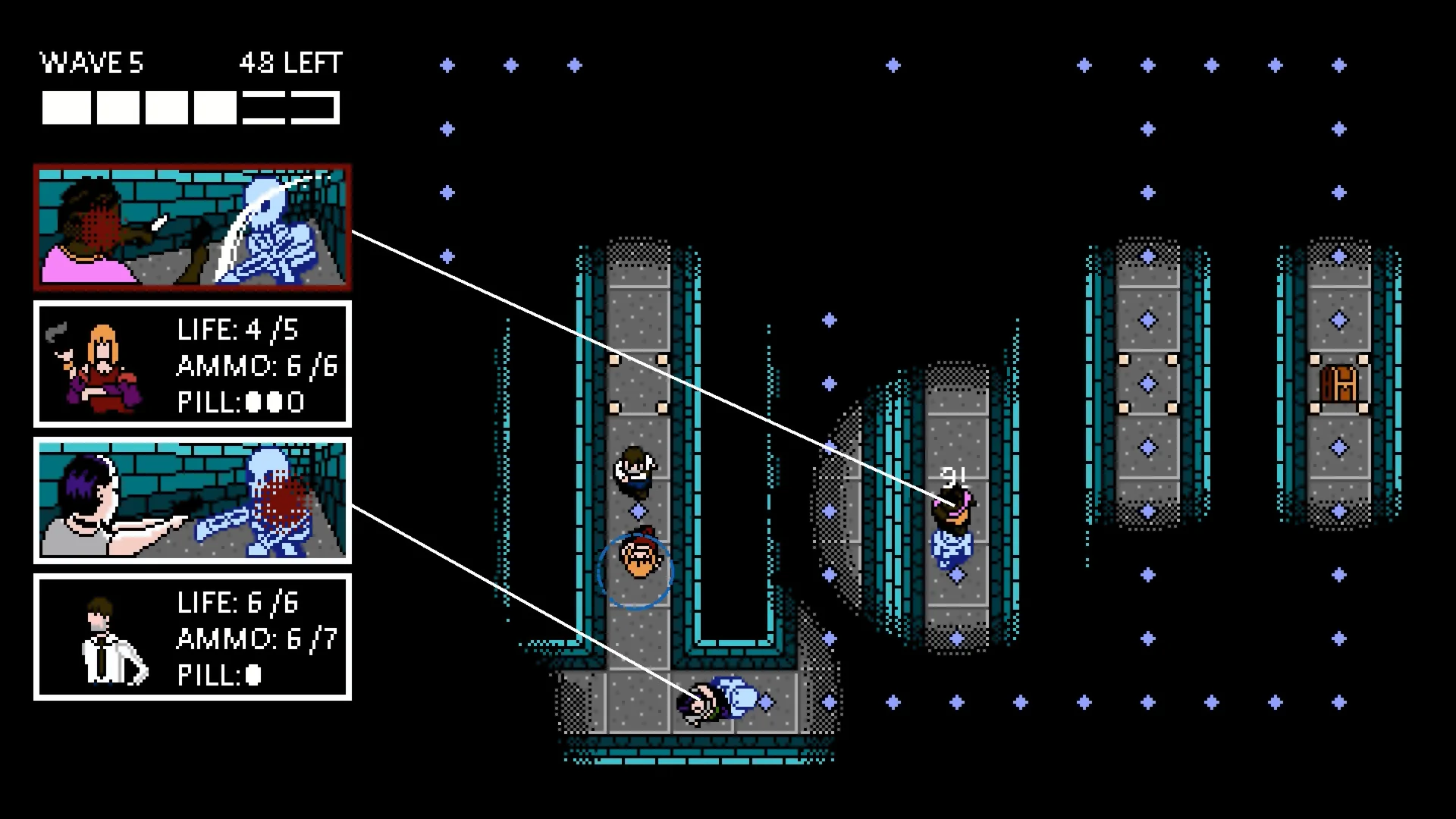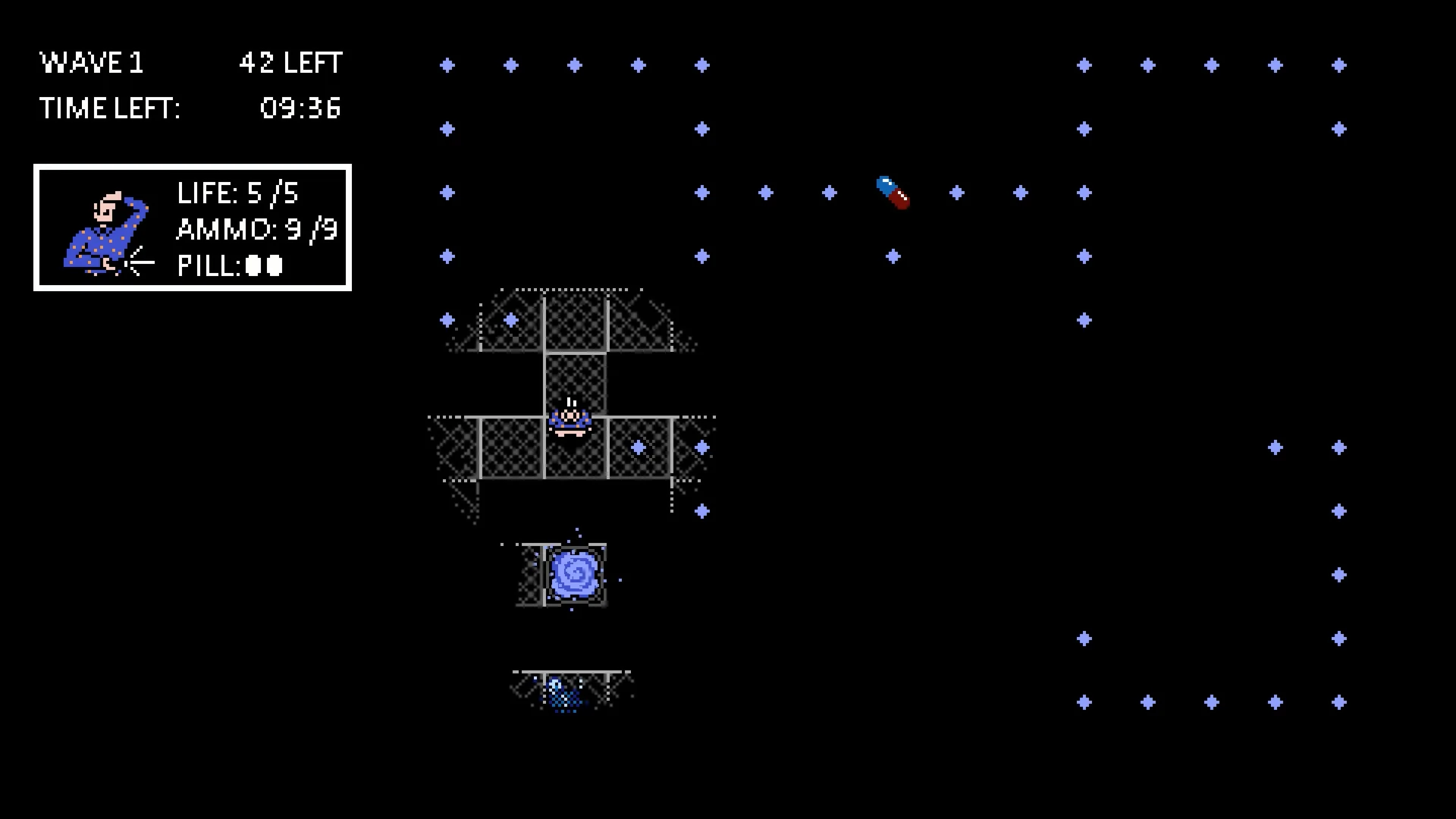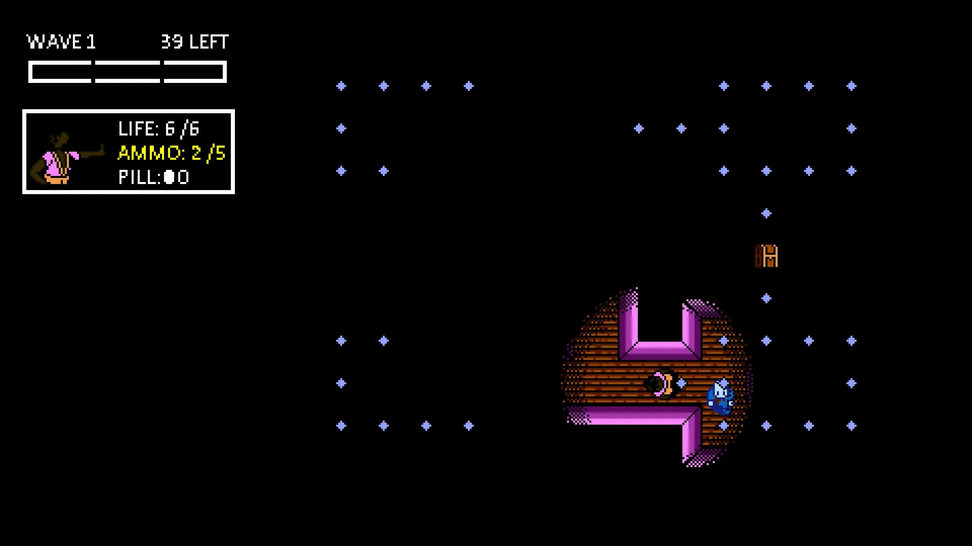 Choose your character and shoot through zombies in this retro dot-collecting maze arcade game for 1-4 players! Featuring multiple ways to play, tackle one of the game's 6 unique scenarios in Campaign mode, or shoot for the hi-score in Arcade mode!