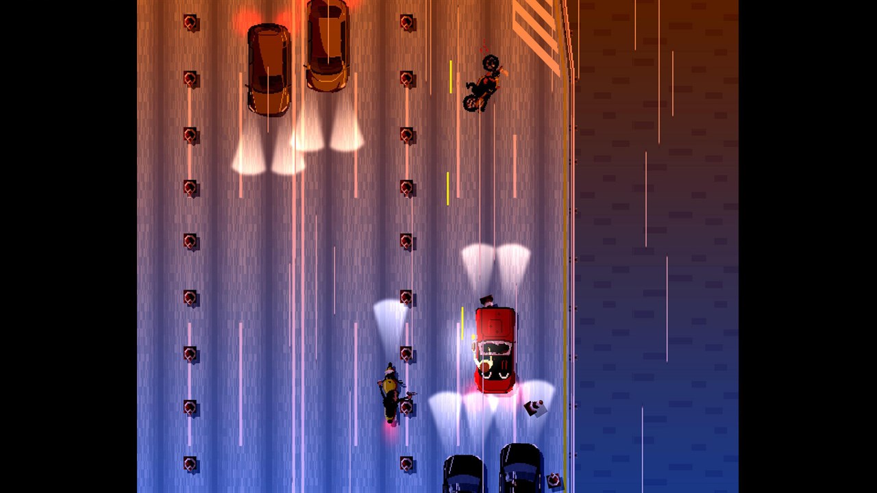 Speed Limit is a non-stop genre-warping arcade experience that never slows down. No cuts, no lapses in the chaos, Speed Limit is an old-school action extravaganza boiled down to its core elements: Hard. Fast. Addictive.