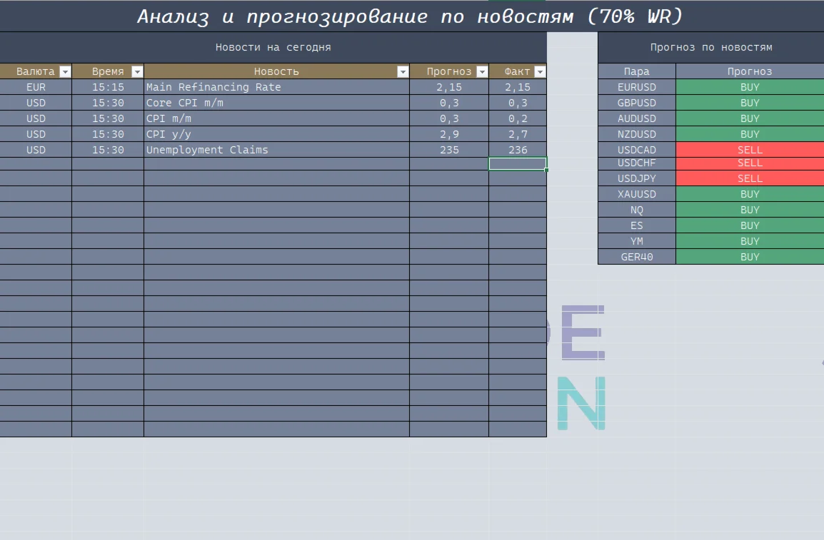 ???? Новостной модуль: Получайте анализ предстоящих новостей с прогнозом вероятного движения рынка (винрейт ~70%). Будьте на шаг впереди!