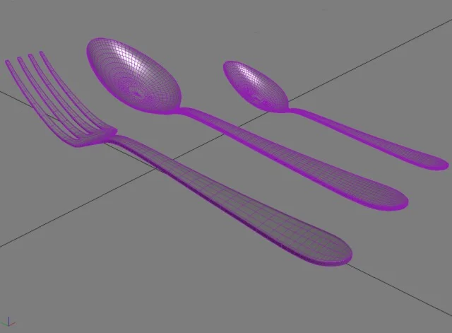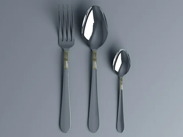 Вилка, столовая ложка, чайная ложка Vitesse. Файл 3ds max 8. Материалы Vray.