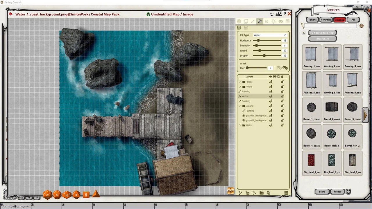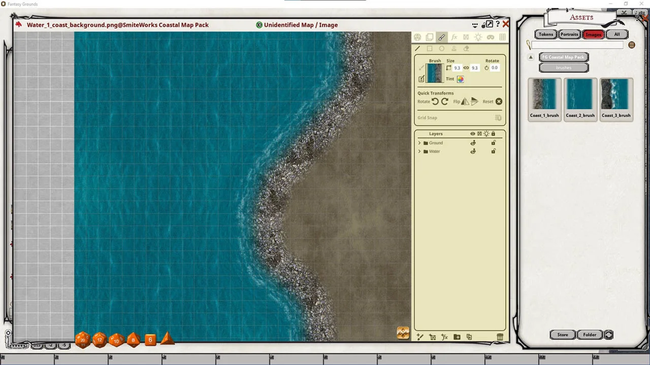 This product requires Fantasy Grounds Unity FG Coastal Map pack The Coastal Map Pack features images and art produced by our in-house artist, Joshua Watmough. They have been organized and optimized for use with Fantasy Grounds Unity and the new image tools.