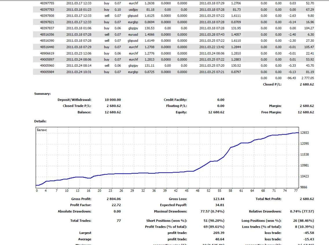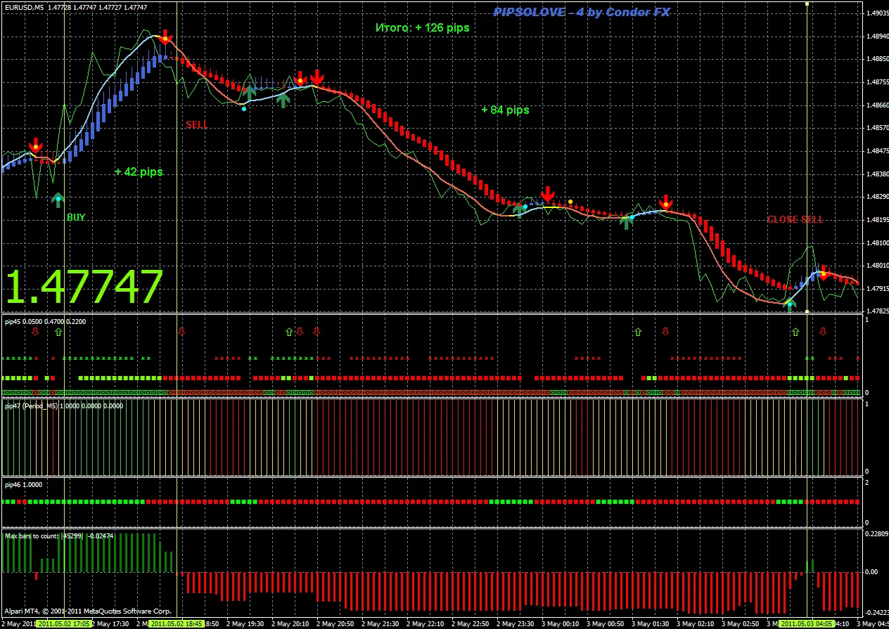 -Используется на таймфреймах m5 (часовых графиках) основных валютных пар (EURUSD,GBPUSD,AUDUSD). Возможно использование и на других валютных парах с меньшей эффективностью;