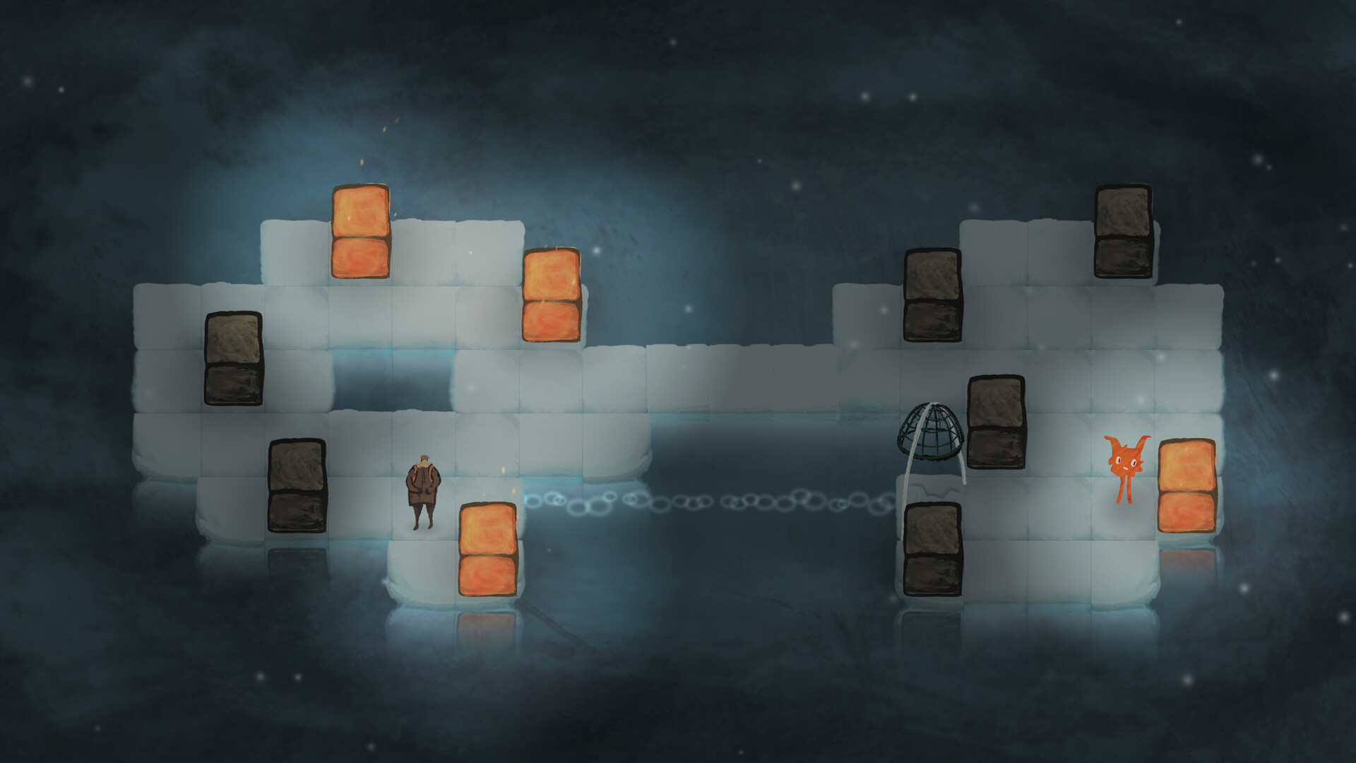 A puzzle game about capturing a creature. Learn to guide it and hide from it in simple yet surprisingly deep and satisfying ways.