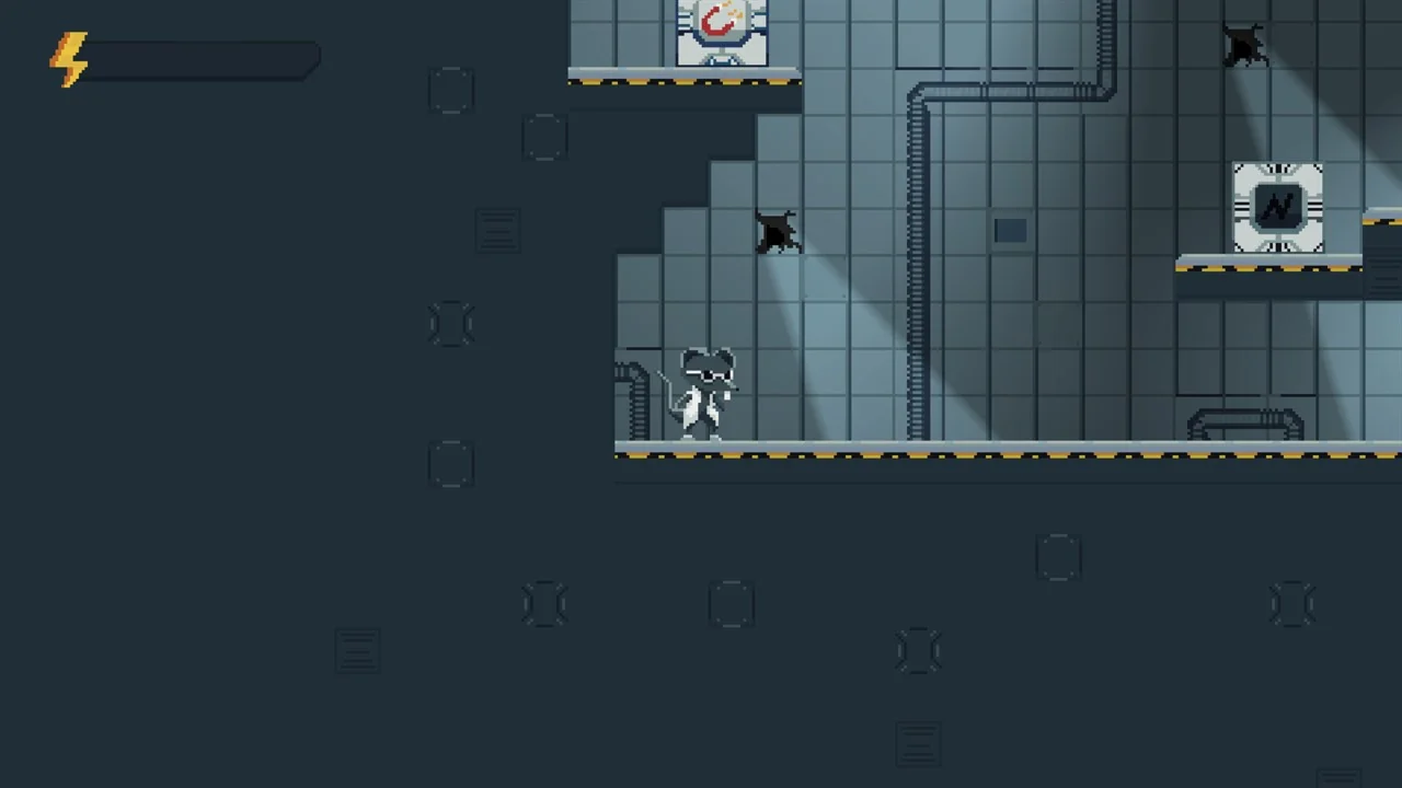 He unleashes himself from the cage and goes into the rat holes in the wall in order to escape from the laboratory.