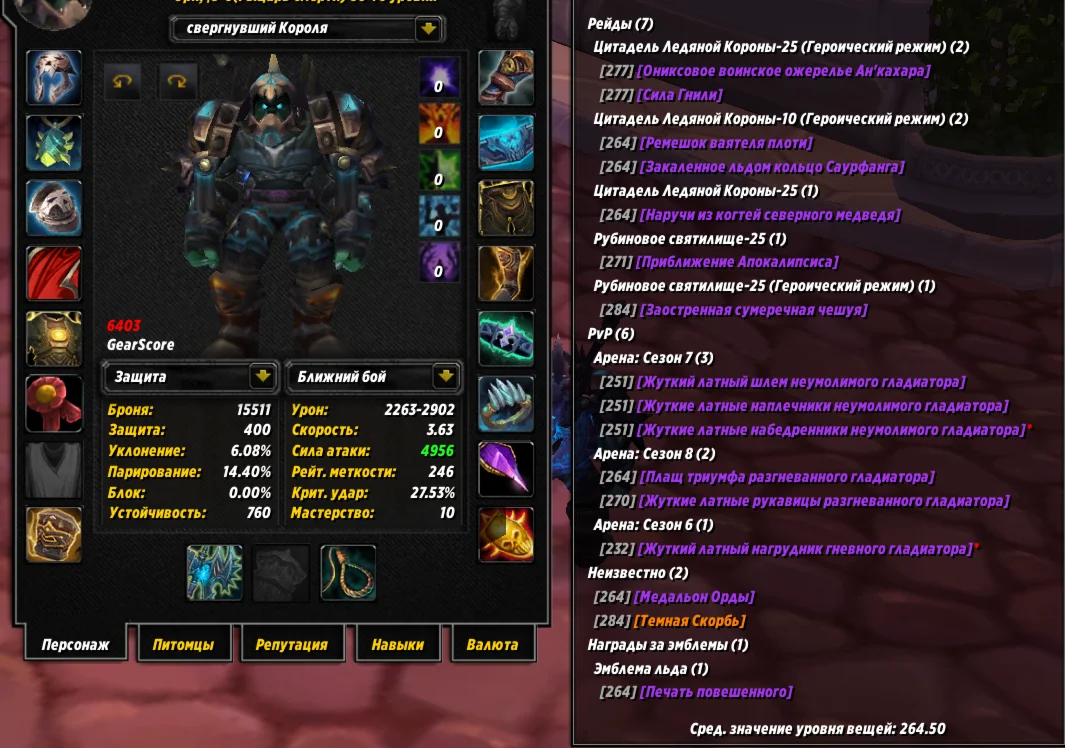 Магазин » №306 х100 Орда. Рыцарь смерти 6641гс PvE, 6403гс PvP