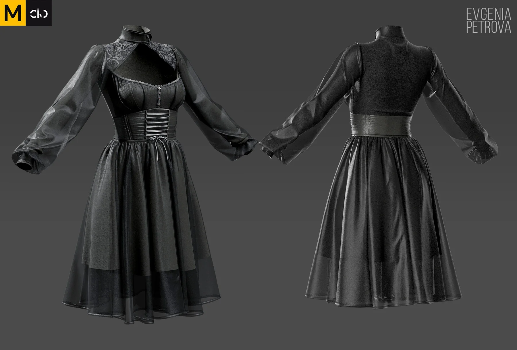 Dark Dress. Marvelous Designer Clo3d Project + OBJ