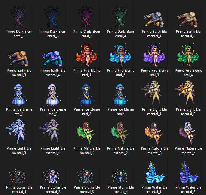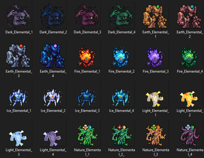 Tiny Tales is designed for those who want to create a cutesy yet epic adventure scenario for their game. In TT Battlers - Elemental Forces, you will find 18 unique and expertly crafted pixel monsters for your game!