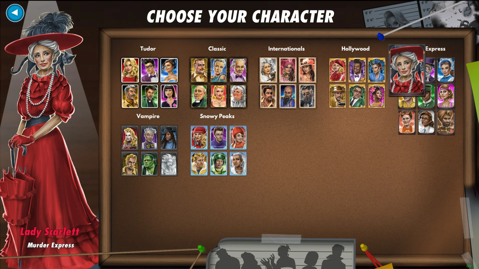 The Ultimate Detective’s Package grants access to ALL themes and character packs. Themes transform the board and characters into exciting new variations. Take a trip to Tinseltown with the Hollywood theme, or step on board the Murder Express!