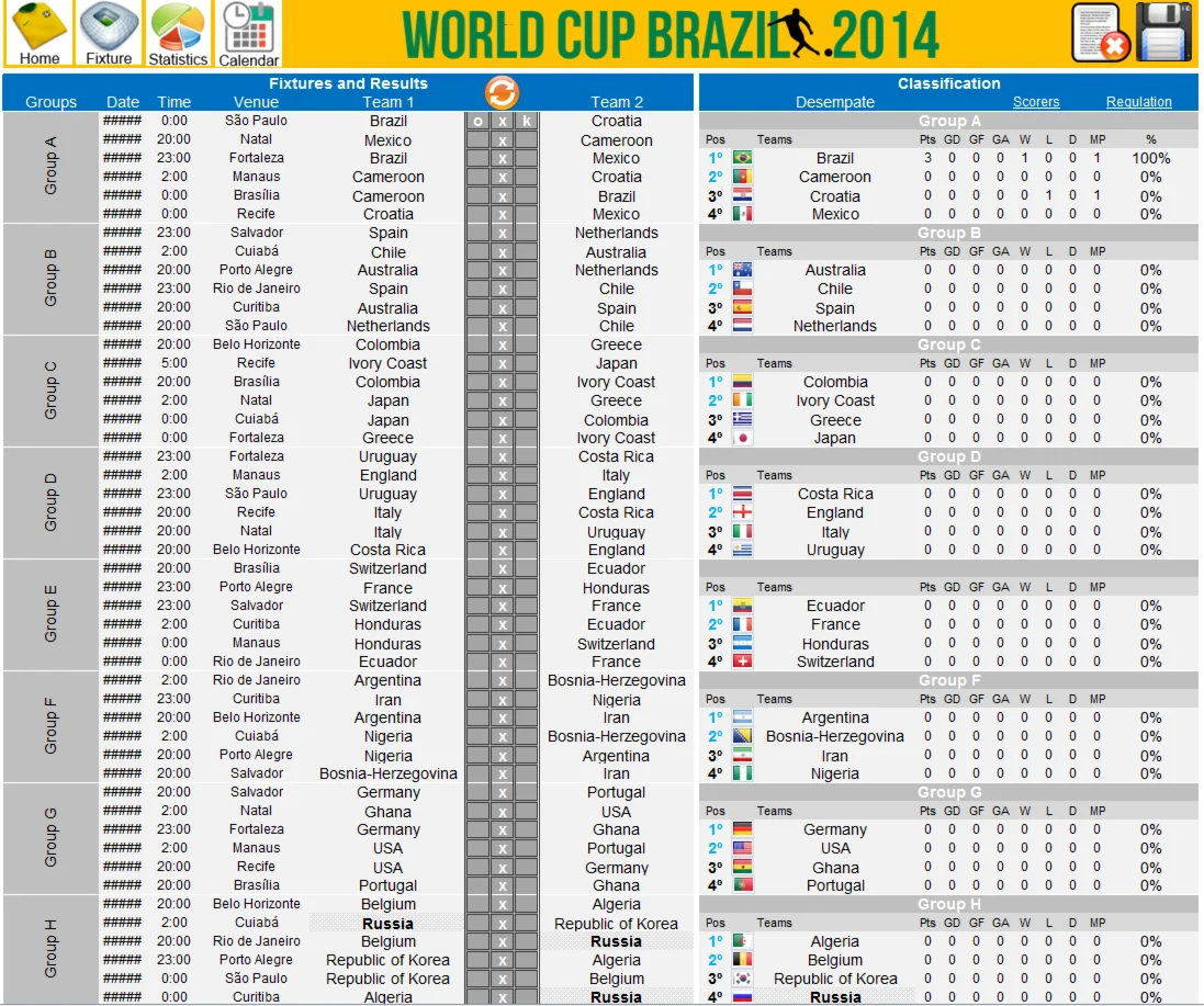 Магазин » World Cup Brazil 2014 Spreadsheet in 5 languages