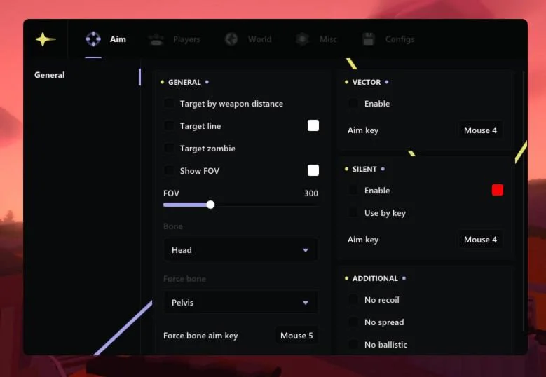 Force bone aim key (binder)