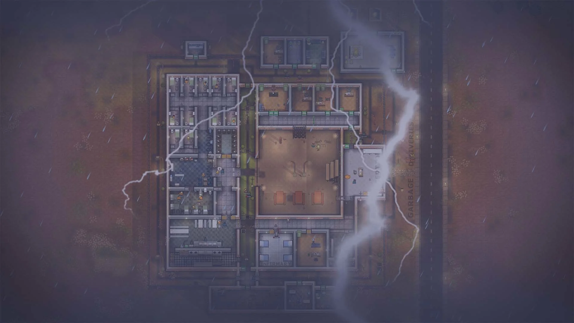 Бунт перед бурей. Стихийные бедствия, например заморозки, сильная жара, нашествие крыс и грозы могут нанести ущерб зданию, понизить рейтинг тюрьмы и испортить территорию.