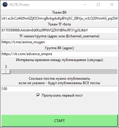 Переноси посты из группы ВКонтакте в канал Телеграм с легкостью и эффективностью с этой программой! Данное решение предоставляет удобный графический интерфейс, который позволяет тебе легко настроить и запустить процесс переноса.