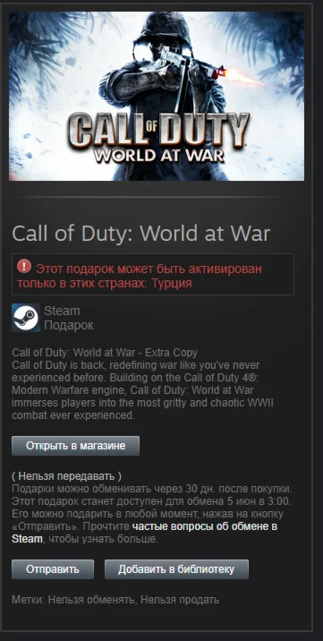 BLACK OPS 2 ИМЕЕТ РУССКУЮ ОЗВУЧКУ, КОТОРОЙ НЕТ ПРИ ПОКУПКЕ В СТИМЕ В СНГ РЕГИОНАХ. ТАК ЖЕ ДАЁТ ДОПОЛНИТЕЛЬНЫЙ ГИФТ WORLD AT WAR, ЕСЛИ ВЫ УЖЕ КУПИЛИ DELUXE ИЗДАНИЕ BLACK OPS 2 В СТИМЕ (РЕГИОНА, В КОТОРОМ ВЫ ПРИОБРЕЛИ (КАК НА 2 КАРТИНКЕ))