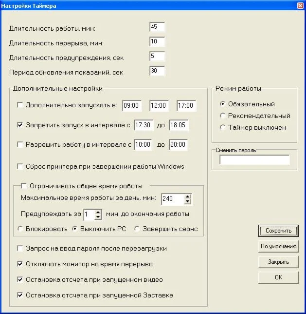 45 минут, особенно в разгар работы (игры). Программа Таймер ЗАСТАВИТ Вас