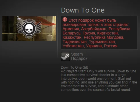 Этот подарок может быть активирован только в этих странах: Армения, Азербайджан, Беларусь, Грузия, Киргизстан, Казахстан, Республика Молдова, Таджикистан, Туркменистан, Узбекистан, Украина, Россия