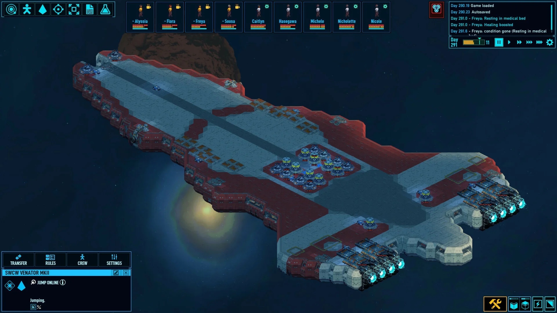 Условия: члены экипажа могут чувствовать тягу к приключениям, страдать от голода и проблем с гигиеной или просто переесть. Различные условия влияют на их самочувствие.