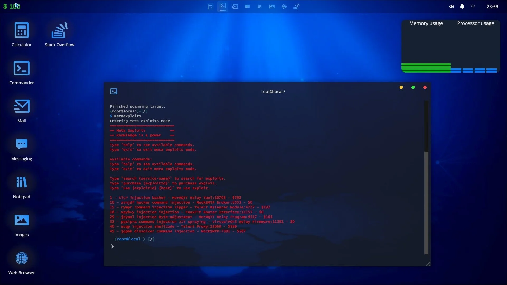 A real-time hacking sandbox simulator with procedurally generated content. Multiple tools and techniques to use, multiple computers to hack, multiple missions to solve, and multiple vulnerabilities to exploit!