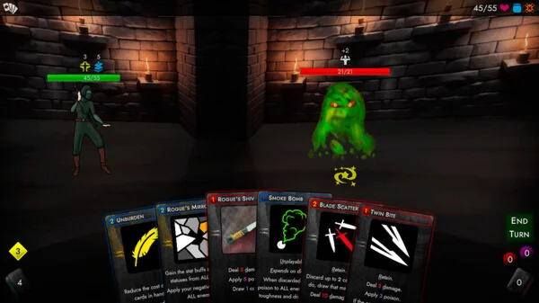 Select a new card to add to your deck at the end of each combat. Gain access to additional cards and strategies during random events.